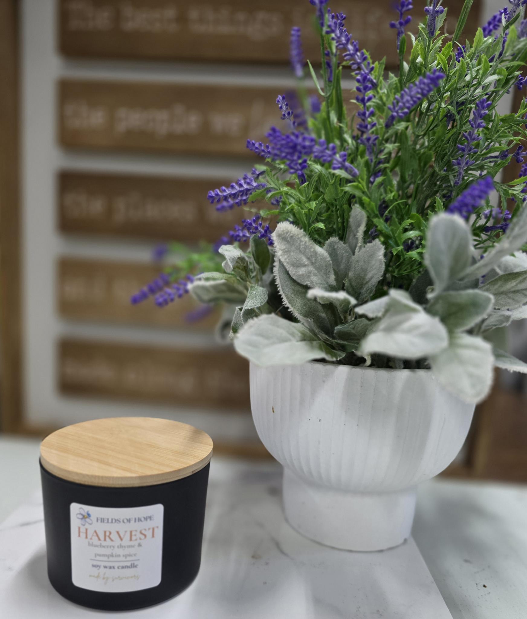 - Harvest - A warm, comforting blend of sweet blueberries, bright citrus, herbal thyme, and creamy vanilla, layered with the cozy fall spices of cinnamon, cardamom, and nutmeg.